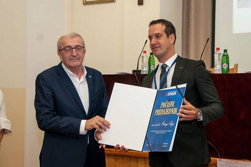 Na kraju svečanoga dijela Skupštine dugogodišnji prvi čovjek Napretka prof. dr. Franjo Topić proglašen je počasnim predsjednikom Društva.